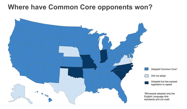 Since March, Indiana, Missouri, North Carolina, Oklahoma and South Carolina have repealed Common Core, and similar legislation has been introduced in at least 16 other states, although few of the bills have made it to a vote. Still, fierce battles are raging in a handful of states like Louisiana, where Gov. Bobby Jindal tried to repeal the standards with an executive order and was sued, and Arizona, where November’s election could give Common Core opponents the majority in the legislature.